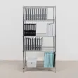Estanterías en acabado cromado y pintura epoxi negra, ideal para el almacenaje en comercios, oficinas, hospitales y hogares.