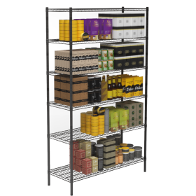 Estanterías en acabado cromado y pintura epoxi negra, ideal para el almacenaje en comercios, oficinas, hospitales y hogares.